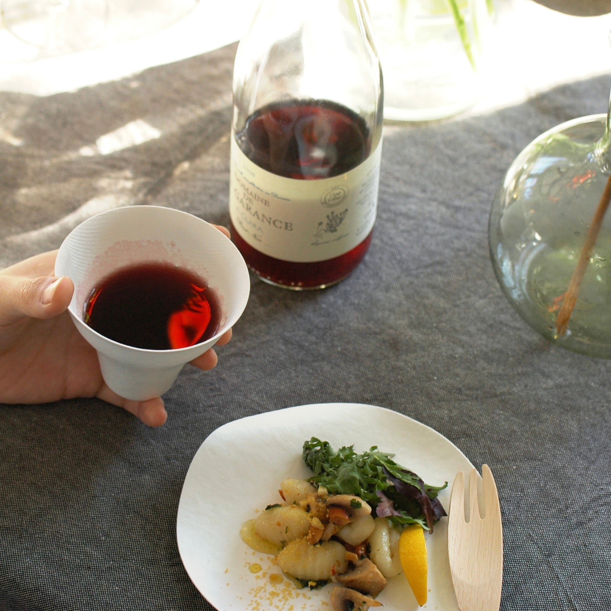 WASARAは植物繊維から作られた、コンポスタブル*な紙の器です。人も動物も、木も草も、最後はすべて土に還り、そこからまた新しい命が生まれます。人が集う時間のために作られたWASARAもまた、自然界へと循環していく役割を担っているのです。