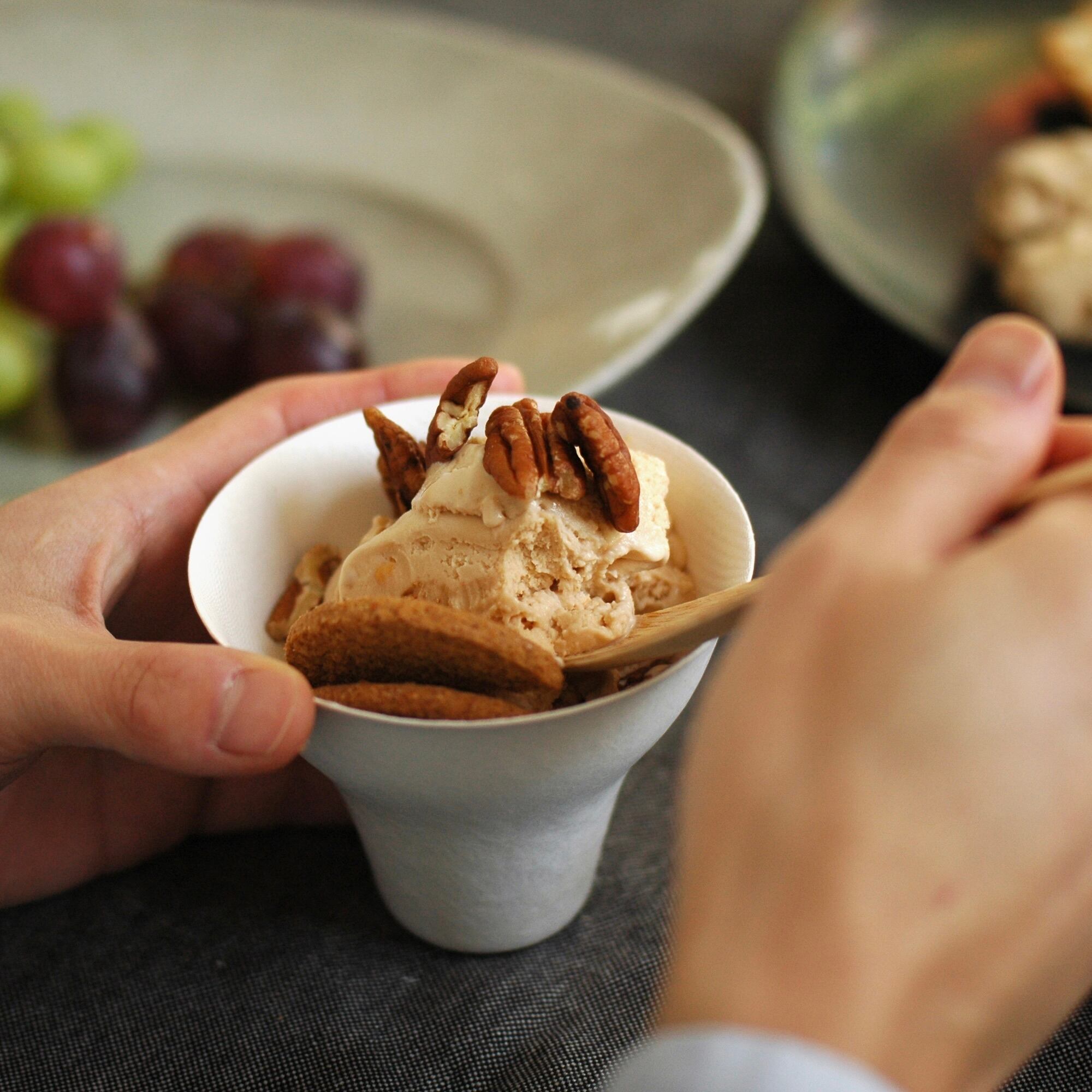 こちらは、容量たっぷりのカップ。ビールやスムージー。スープやデザートにと多用途。