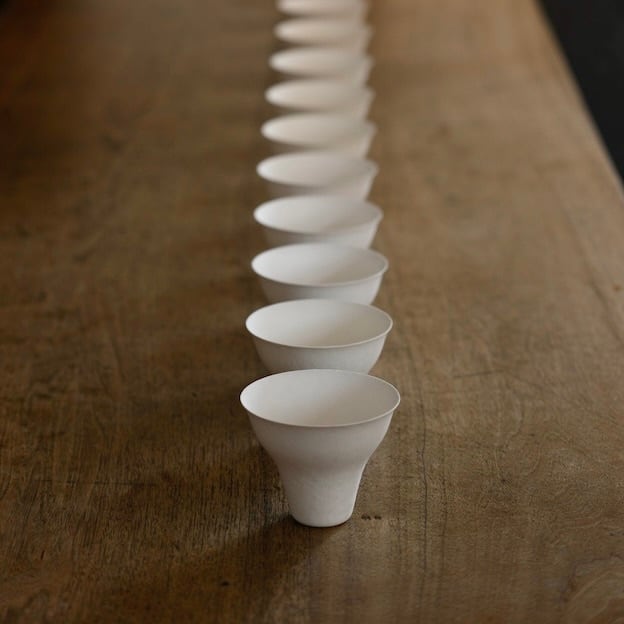 手にすっと馴染む流麗なフォルム、和紙のような質感、繊細な陰翳、重ねたときの美しさ。