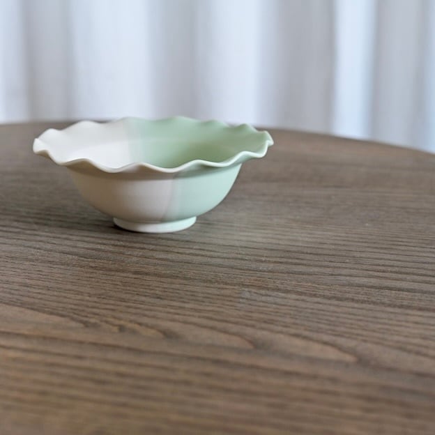 こちらは、愛らしいふりるのバイカラーの小鉢。デザートカップや副菜の器に。