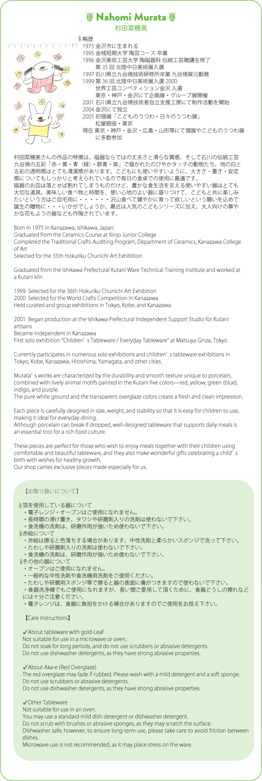 ※村田菜穂美さんの作品の類似品にはご注意ください