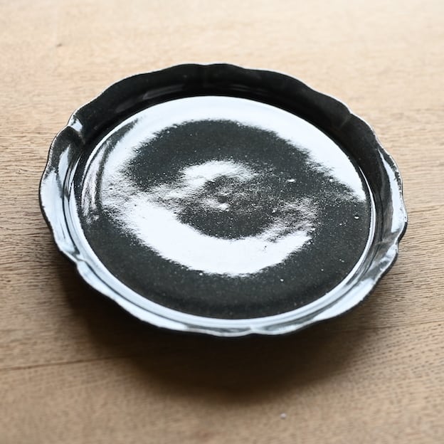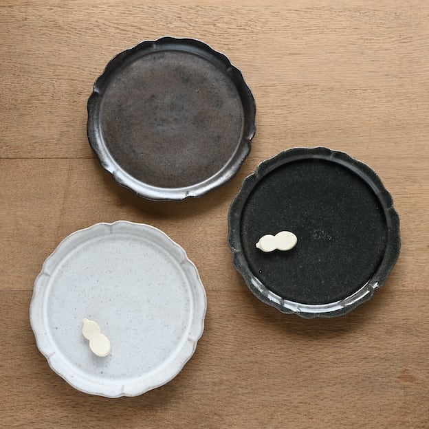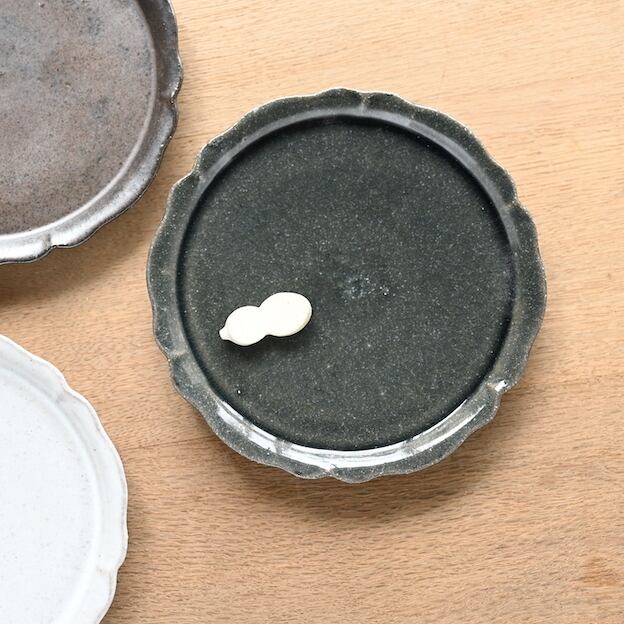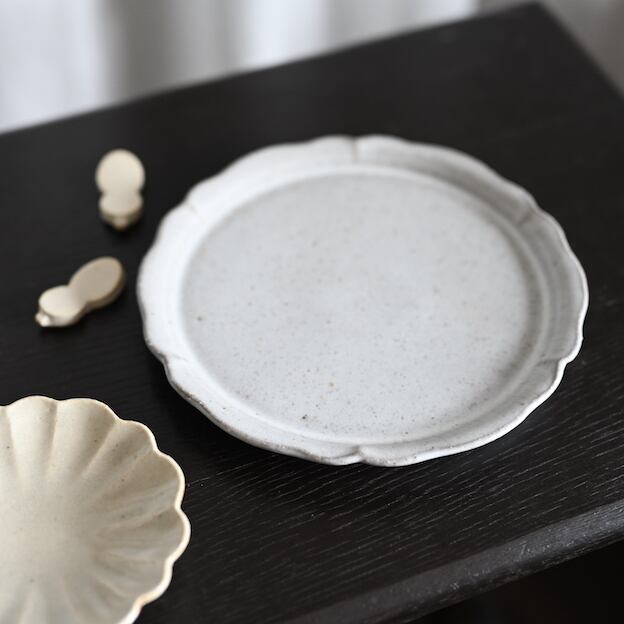 こちらは、輪花。その名のごとく、お花の輪郭をかたどったプレートです。フラットでスタッキングもしやすく、こちらも取皿に使いやすいサイズです。