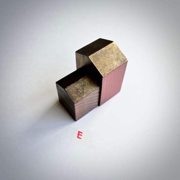Title of work: Photo Stand "SHITAMI" A photo stand that evokes Noto through its wooden walls. The artist has applied lacquer and foil to this paperweight made from Noto's Ate wood. They envisioned the diverse expressions of clapboards, which are reminiscent of the scenery of Noto, and combined the smooth surface of the wood gives an expression that highlights the unevenness of the wood grain. Notes: Clapboards are the boarded exterior walls used on houses. The boards are laid so that horizontal boards are overlapped diagonally little by little. This is the traditional exterior of houses that can be seen in towns and villages close to the sea. Cedar boards are often used, but in the Noto region Ate wood (Noto hiba) is sometimes used. At first, the exterior has a moist texture typical of conifers, but after exposure to wind and rain mixed with salty water, it turns silvery gray and changes to a tasteful expression that highlights the unevenness of the wood grain.
