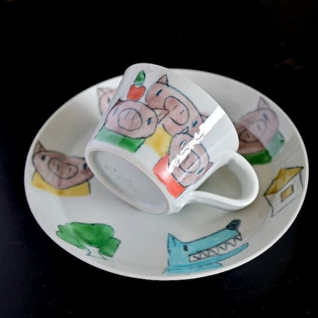 人気の絵本のストーリーテリングの20cmプレートです。こちらは3匹のこぶたを題材としたお皿です。ランチのワンプレートにも、夜ご飯のメイン皿にも、少し立ち上がりがあるので、ミニカレーなどにも重宝します。